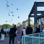 Hitze, Hitze und zu viel Sonne ist hier in Mülheim an der Camera Obscura. Hier findet gerade die standesamtliche Trauung statt, zu der uns die Eltern mit 22 Tauben bestellt haben. Aus Rücksicht auf das Brautpaar haben wir daher nicht die pralle Sonne auf dem Rasen als Standort für den Korb gewählt, sondern den Schatten mit Blick auf den schönen Weg. Das glückliche Paar wird dann gleich gemeinsam unsere Tauben fliegen lassen um somit die Wünsche der Eltern für die Ehe zu unterstreichen. Gelenken wird das Gedicht von der Schwester, die uns auch schon für ihre Trauung vor einiger Zeit gebucht hatte.