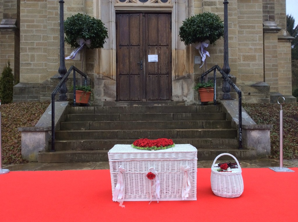 Das Brautpaar hat sich unsere schneeweißen Tauben gewünscht. Die Gäste wird es mit unserem animierten Ballonservice und unserem Sektempfang Light überraschen. Wir bedanken uns bei der evangelischen Kirchengemeinde der Stadtkirche Bad Pyrmont für ihre freundliche und spontane Hilfe die uns ihre Räumlichkeiten zur Verfügung stellten.