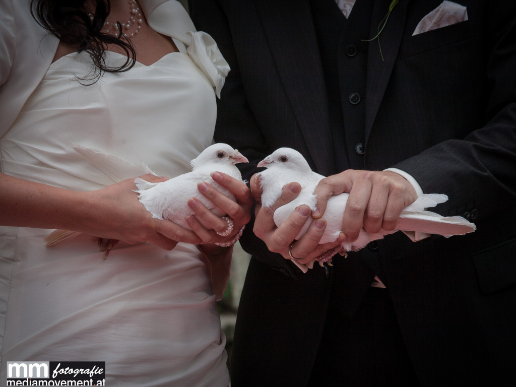Mit einem strahlenden Lächeln öffnete die beiden den Korb und die Tauben durften in den sonnigen Himmel steigen und zurück nachhause fliegen.